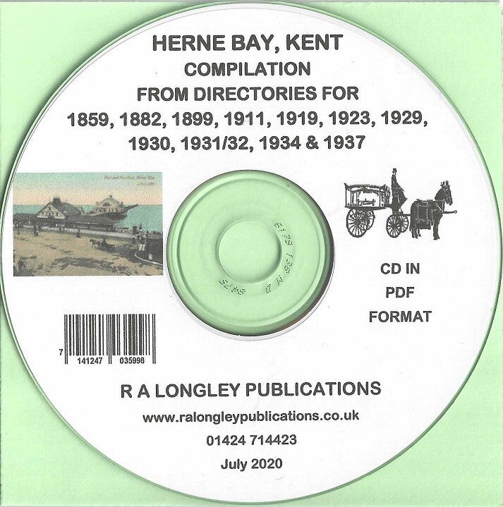 A compilation PDF file for Herne Bay covering the following years; 1859, 1882, 1899, 1911, 1919, 1923, 1929, 1930, 1931/32, 1934 & 1938