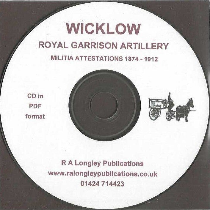 Wicklow Royal Garrison Artillery Index 1874 - 1912