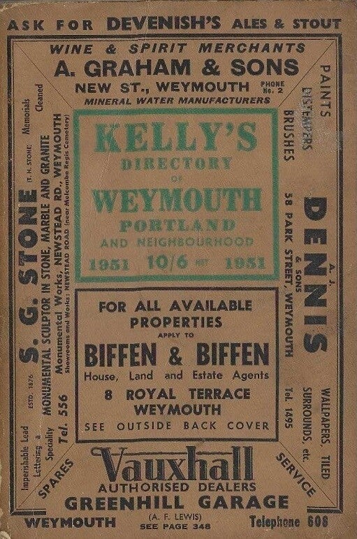 The complete Kelly's 1951 Weymouth Directory reproduced by kind permission of Reed Business Information Ltd.