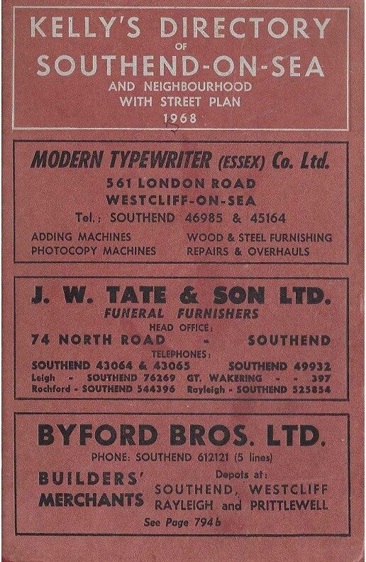 The complete Kelly's Directory for Southend-on-Sea for 1968 reproduced by kind permission of